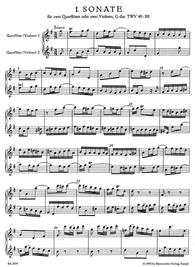 6 Sonaten Für Zwei Querflöten Oder Zwei Violinen. Heft 1 TELEMANN GEORG PHILIPP
