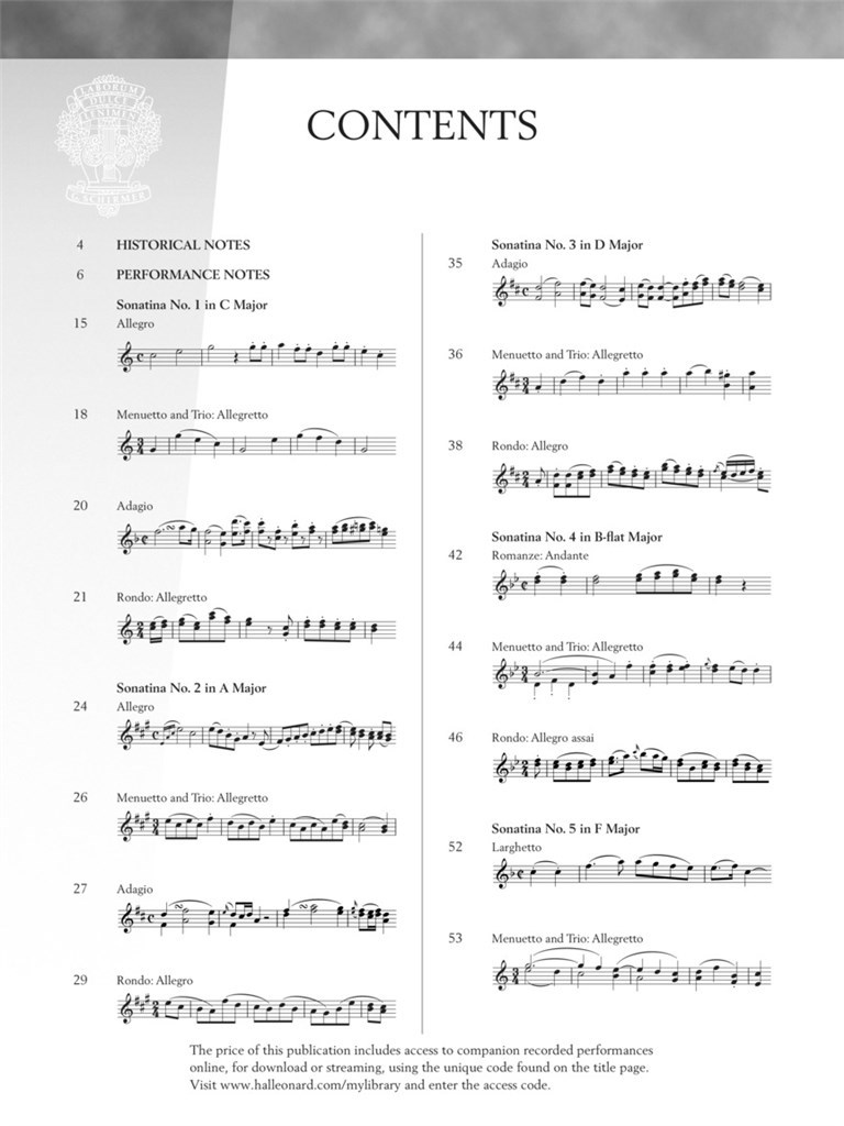 1. Sonatina No. 1 In C Major 2. Sonatina No. 2 In A Major 3. Sonatina No. 3 In D Major 4. Sonatina No. 4 In B-Flat Major 5. Sonatina No. 5 In F Major 6. Sonatina No. 6 In C Major