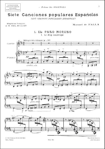 7 Canciones Populares Espanolas Pour Voix Et Piano (Voix Moyennes) FALLA MANUEL DE