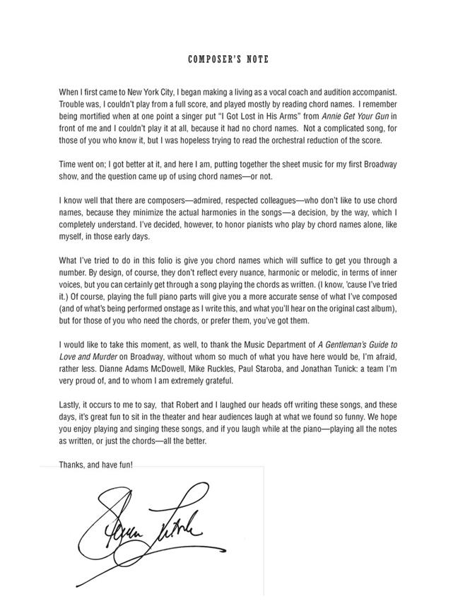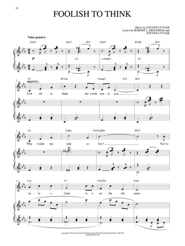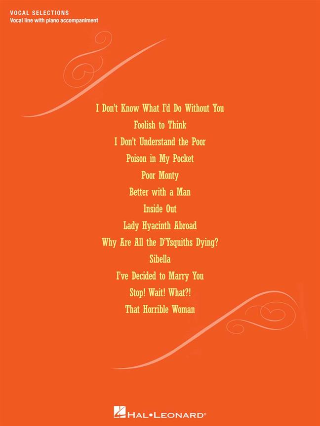 Lauréate du Tony Award 2014 de la meilleure comédie musicale ! Notre portfolio de sélections vocales comprend : Better with a Man · Insensé à penser · Je ne sais pas ce que je ferais sans toi · Je ne comprends pas les pauvres · J’ai décidé de t’épouser · À l’envers · Lady Hyacinth à l’étranger · Poison dans ma poche · Pauvre Monty · Sibella · Arrêtez ! Attends ! Quoi ?! · Cette Femme Horrible · Pourquoi tous les D’ysquiths meurent-ils ?