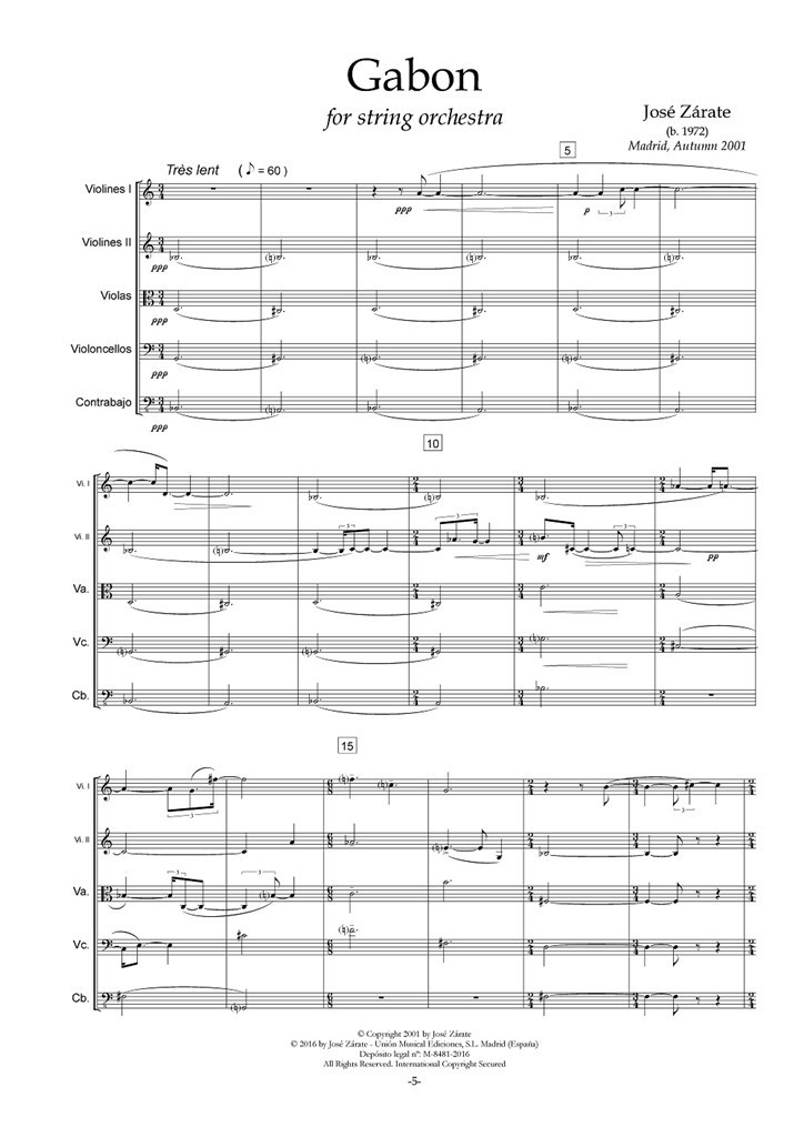 "Gabon" ("good night" in the basque language) (2001), is a work where the composer investigates and delves into his personal idealization of the relationship of the text and its interpretation as poetic-musical recital. The piece tries to propose to the musician certain meaningful poetical concepts, with the requirement of a meticulous willingness to sing, to recite, and to feel.