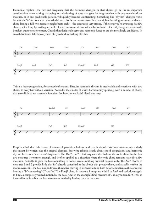 A Guide To Chord-Melody Jazz Guitar introduces intermediate and advanced players to the chord-melody style. It teaches the requisite skills needed to play and create original arrangements, basic chord forms and inversions, chord substitutions, walking bass lines and other tricks of the trade.