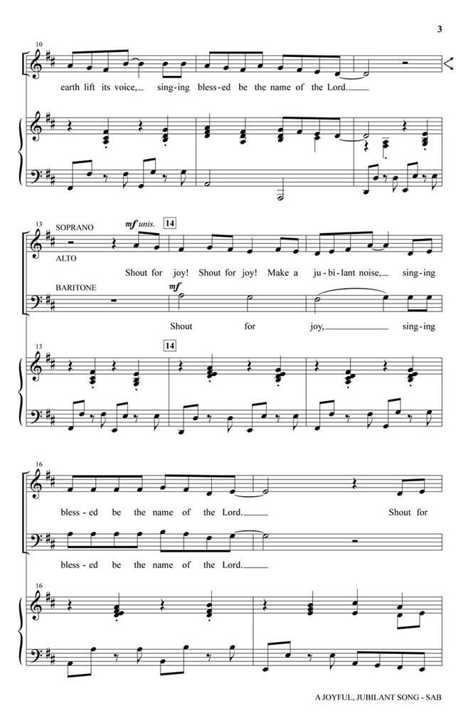 Utilisations : Général, Appel au culte, Chœur de jeunes. Écriture : Psaume 5:11 ; Psaume 72:18-19 ; Psaume 113:1-3Cette pièce vive et bienveillante est une acclamation énergisante de louange. La voix SAB est parfaite pour l’esprit du théanthem, et l’approche joyeuse et rythmique est un excellent choix pour un appel au culte.
