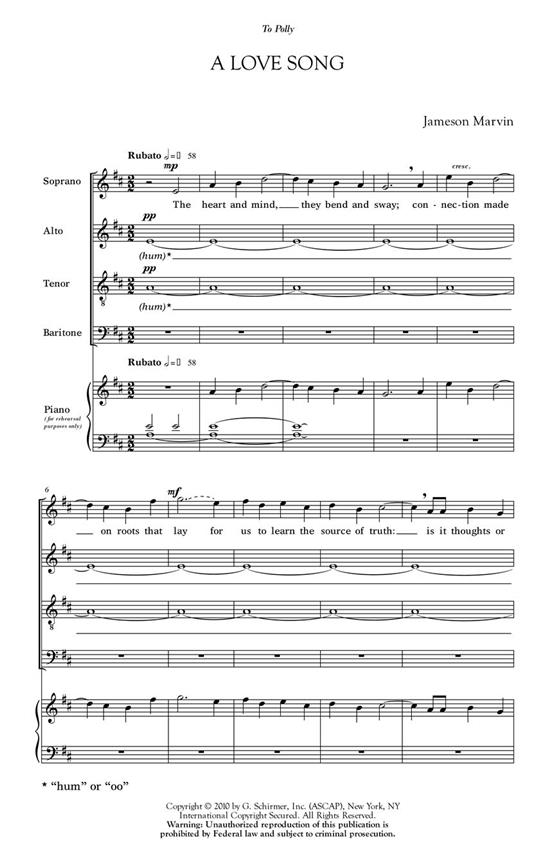 Reflections from composer Jameson Marvin on a love that is quiet and secure as a result of a life well lived and well loved. And even after many years together, the excitement of a love that can still grow is captured in the musical writing.