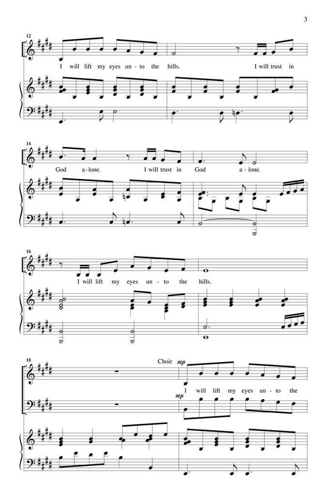 Le texte du Psaume 121, Je lèverai mes yeux vers les collines, bénéficie d’un nouveau décor de Joseph Martin. Ses mélodies sont toujours mémorables et ses accompagnements témoignent de ses talents au clavier. Les chorales assimileront rapidement cette chanson et la trouveront magnifiquement gratifiante.