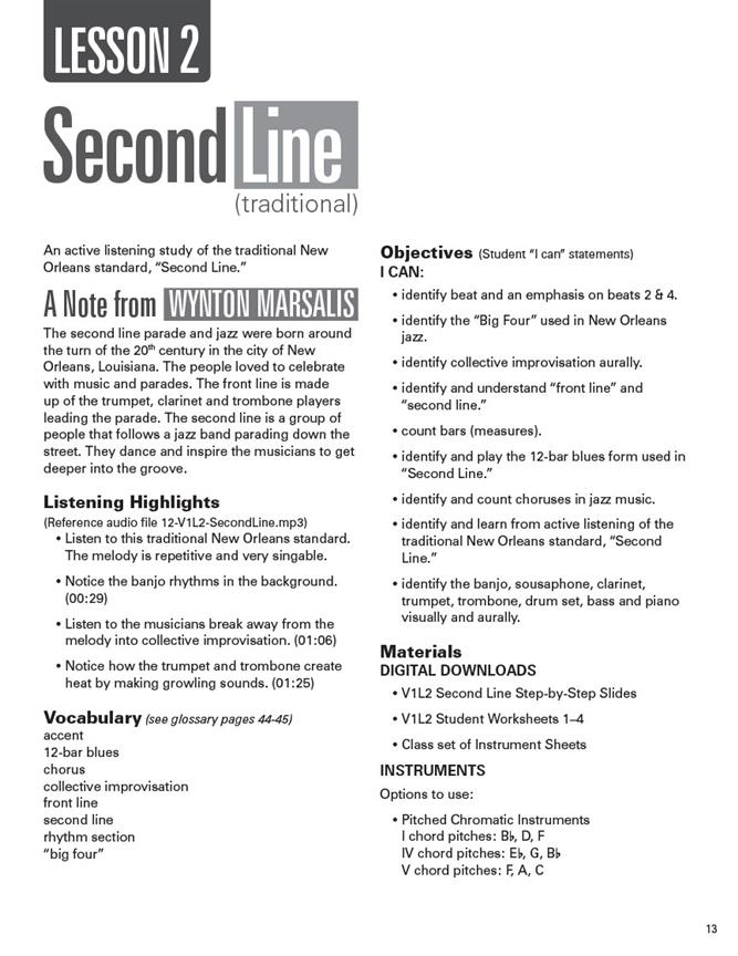 Jazz for Young People vous permet de vous familiariser avec le langage du jazz grâce à des explications de qualité combinées à un apprentissage par la pratique ! Présenté en deux volumes, il comprend des leçons évolutives qui combinent contenu et enregistrements audio/video de Wynton Marsalis et du Jazz at Lincoln Center Orchestra avec l'apprentissage interactif des élèves, comprenant des instruments que tout professeur de musique possède ou peut facilement se procurer. Idéal pour une classe de musique générale, pour une classe de jazz débutante, ou un ensemble de jazz débutant.