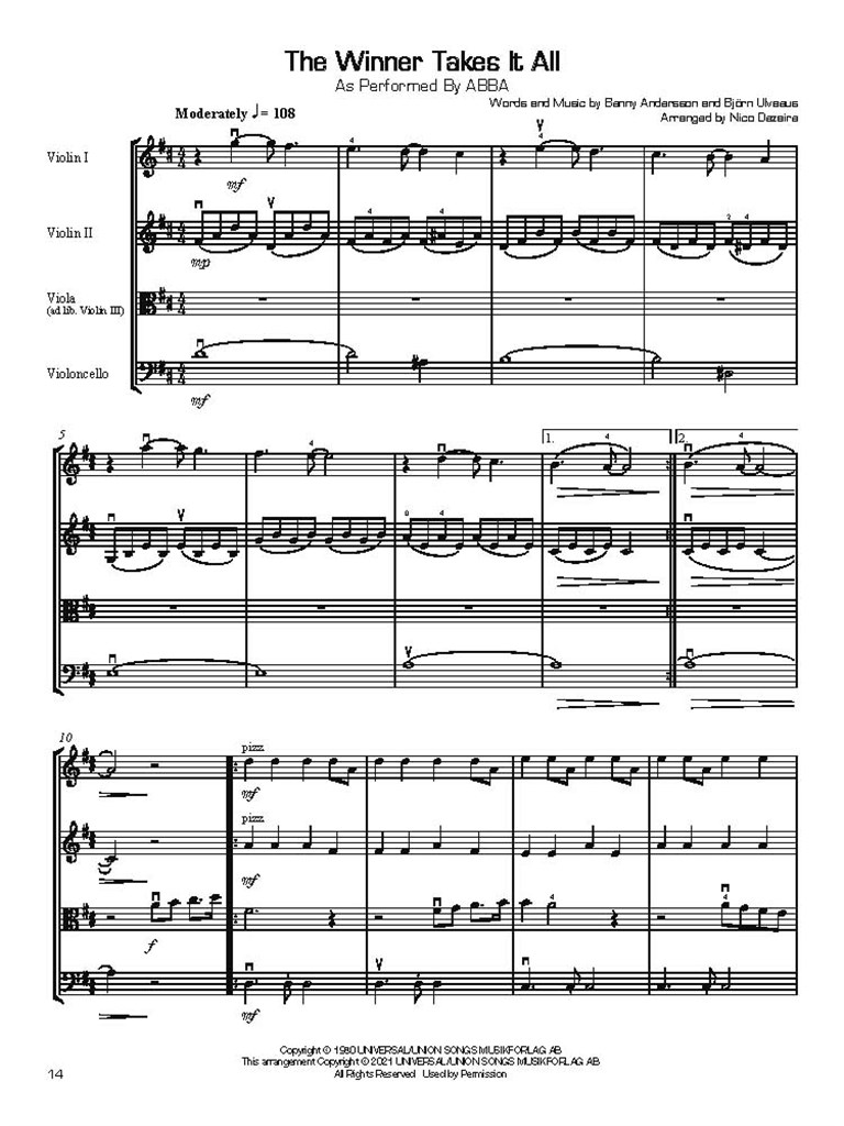 Les plus grands succès d'ABBA remontent à près de cinquante ans - et pourtant leur popularité n'a jamais cessé. Nico Dezaire a lui aussi été séduit par le célèbre groupe suédois et les a choisi pour étoffer la collection De Haske « Pops for String Quartet ». Il a sélectionné trois chansons incontournables d'ABBA comme prédestinées à être jouées sur des cordes. Un vrai régal auditif à savourer en toutes circonstances !
