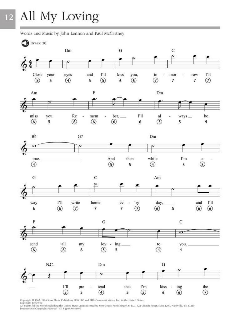 All My Loving Blowin’ In The Wind Edelweiss Every Breath You Take I’m An Old Cowhand (From The Rio Grande) It’s A Small World Itsy Bitsy Spider Long, Long Ago Moon River Ob-La-Di, Ob-La-Da Oh! Susanna Ring Of Fire This Old Man You Are My Sunshine Your Cheatin’ Heart