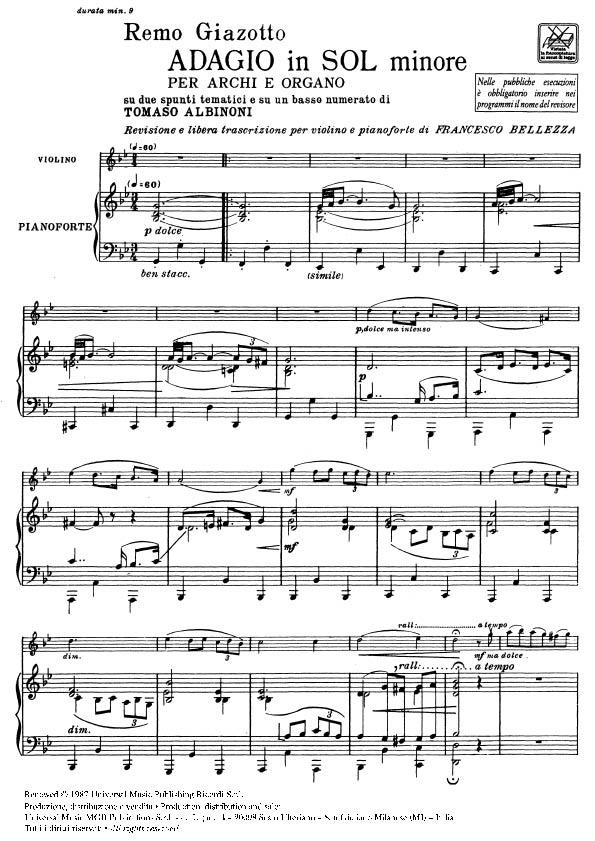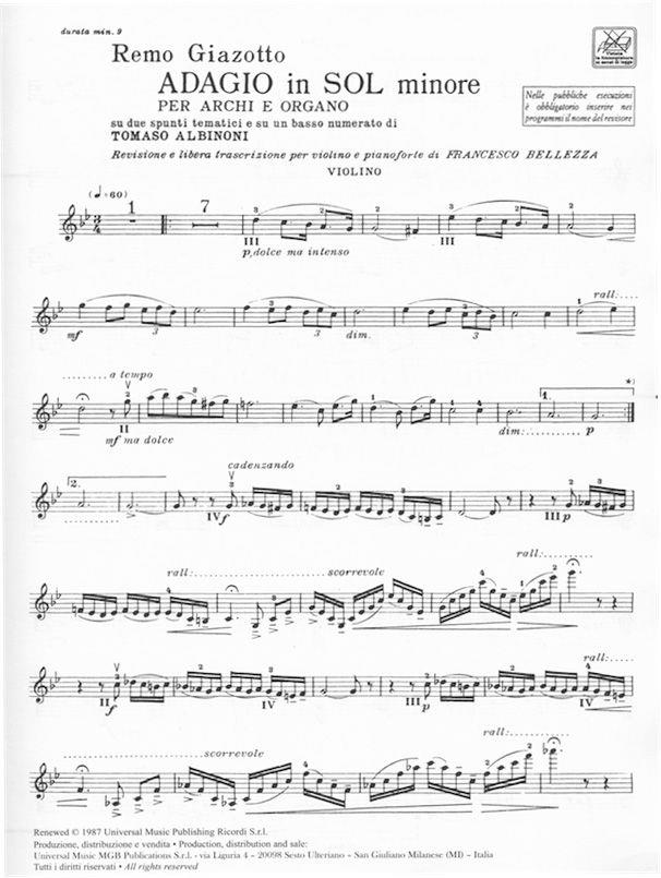 Adagio In Sol Minore, Per Archi E Organo GIAZOTTO R.