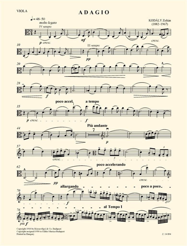 Adagio (Viola And Piano) KODALY ZOLTAN