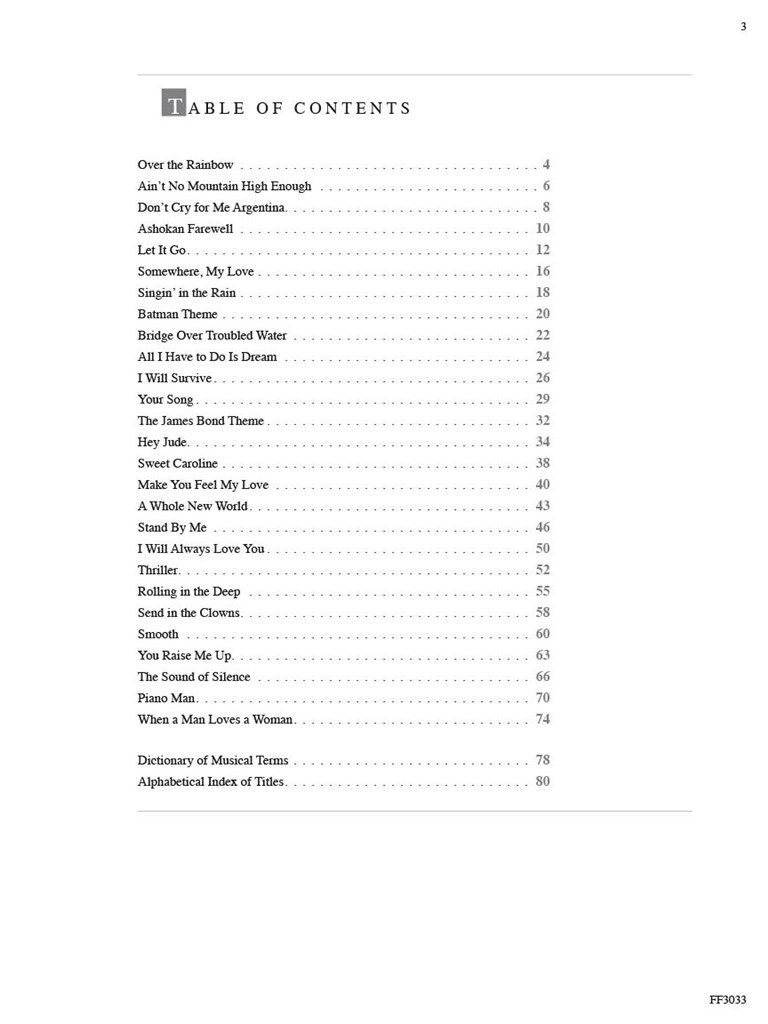1. Ain’t No Mountain High Enough 2. All I Have to Do Is Dream 3. Ashokan Farewell 4. Batman Theme 5. Bridge Over Troubled Water 6. Don’T Cry For Me Argentina 7. Hey Jude 8. I will always love you 9. I will survive 10. James Bond Theme 11. Let it Go 12. Make You […]