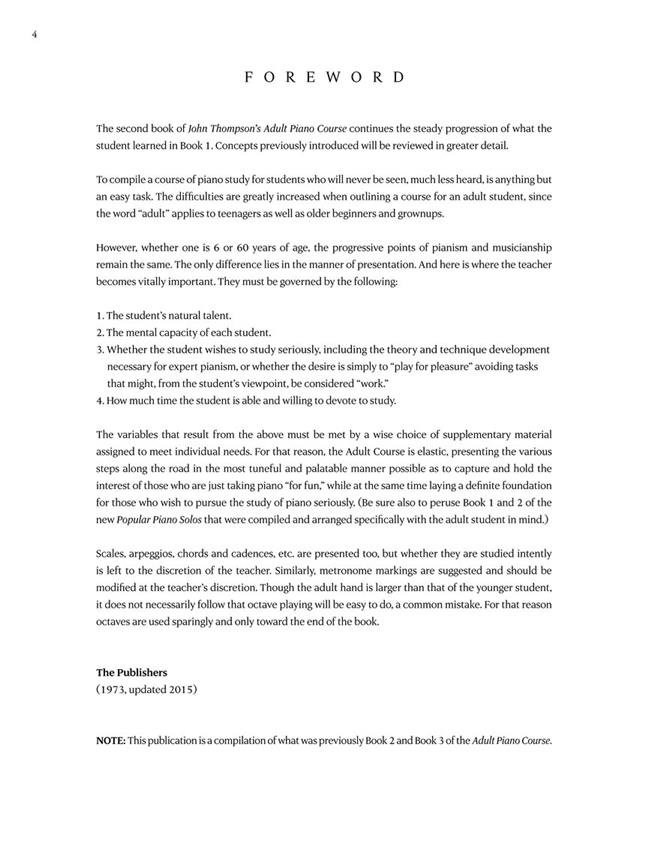 Adult Piano Course Book 2 THOMPSON JOHN