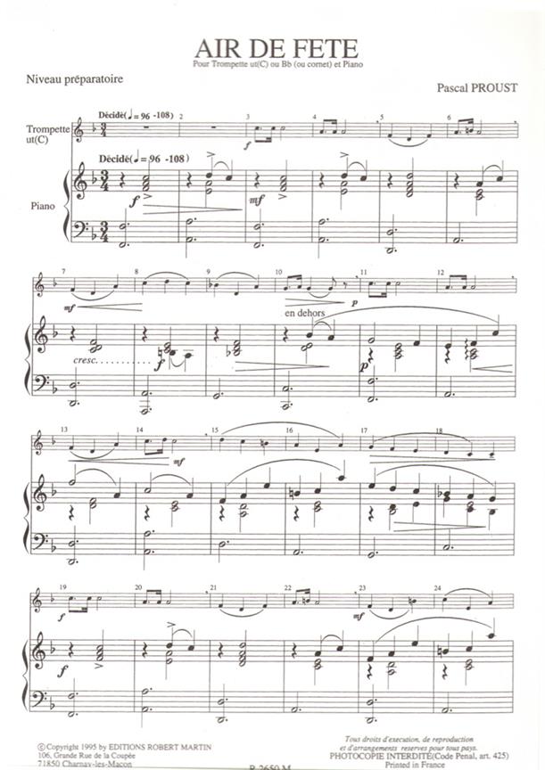 Air De Fête, Sib Ou Ut PROUST PASCAL