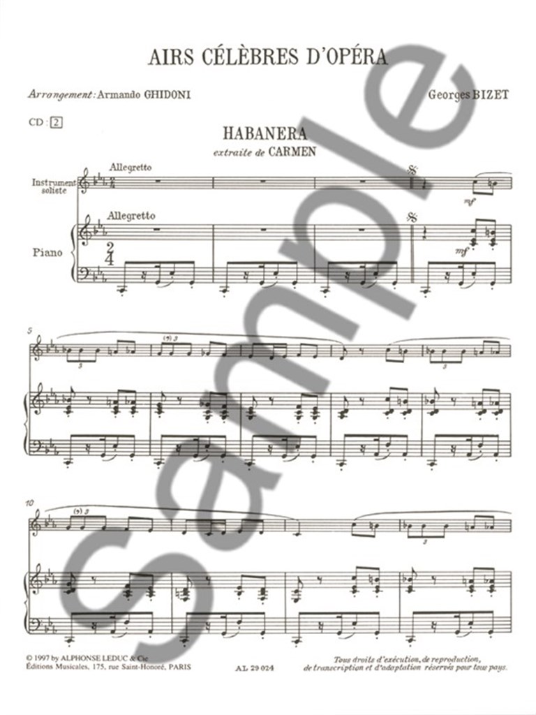 Airs Celèbres D'Operas Vol. 1 features some of the greatest operatic works, arranged for Trumpet or Cornet with Piano Accompaniment. Includes Bizet's Habanera, from 'Carmen', Gluck's - Che faro senza Euridice, from 'Orfeo et Euridice', Puccini's - E lucevan le Stelle, from 'Tosca' and many more. Arranged and compiled by Armando Ghidoni.