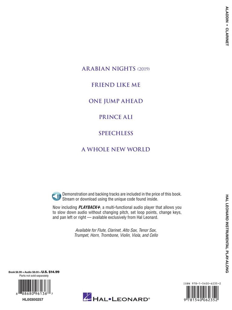 Six songs from the 2019 edition of Disney's Aladdin are included in this collection for instrumentalists. Each book features online access to audio demonstration tracks for download or streaming to help you hear how the song should sound. Songs include: Arabian Nights (2019) - Friend like Me - One Jump Ahead - Prince Ali - Speechless - A Whole New World.