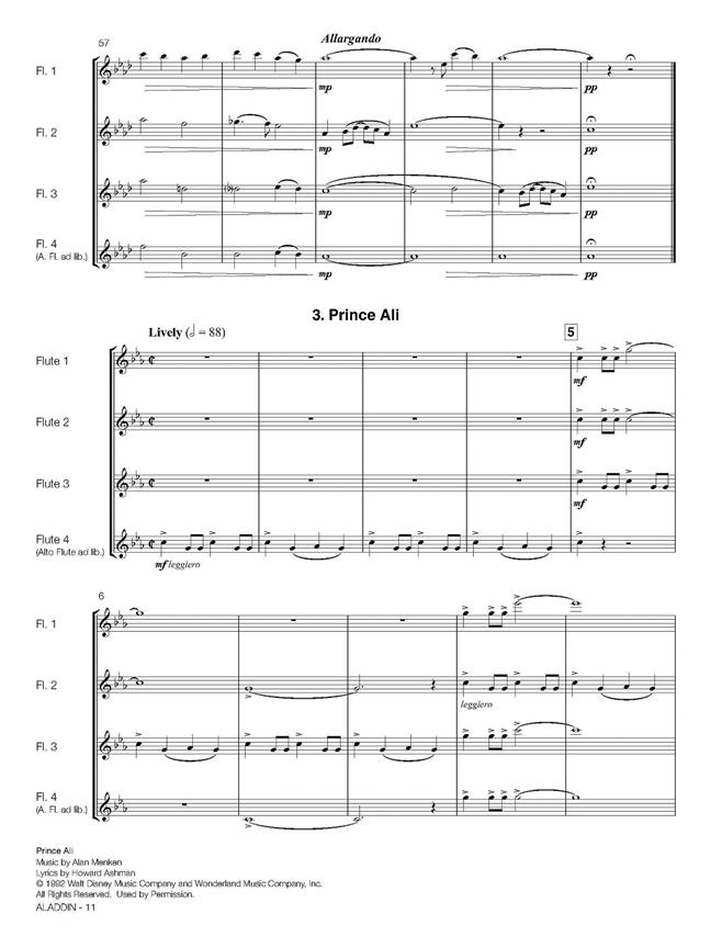 Aladdin, l'un des films d'animation les plus populaires de Disney, est sorti en 1992 et a été suivi, en 2019, de sa version en live action. Trois chansons de la bande originale de cette dernière - " Nuits d'Arabie ", " A Whole New World " et " Prince Ali " - ont été arrangées par Robert van Beringenwhich pour quatuor à instrumentation variable, permettant ainsi à n'importe quel ensemble de se familiariser avec cette splendide musique.