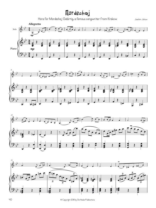 Le recueil All Time Klezmers s´inspire des danses et des chants juifs joués par les klezmorim : de la beauté lyrique de la Hora à l'exubérance du Freilach. Certaines pièces possèdent une deuxième voix optionnelle qui peut être utilisée pour jouer en duo ou pour varier le contexte thématique dans le cas d'un passage avec reprise. Ce recueil contient uniquement les parties d'accompagnement de piano de l'ensemble des pièces presentées dans All Time Klezmers pour clarinette.