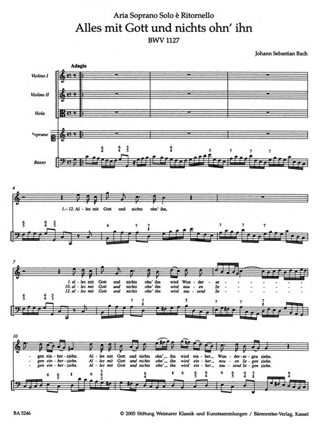 Alles Mit Gott Und Nichts Ohn’ Ihn Für Sopran, Zwei Violinen, Viola Und Continuo BACH JOHANN SEBASTIAN