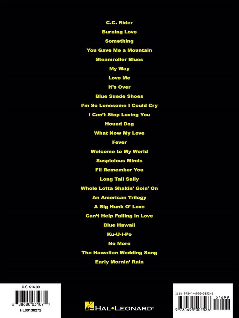 Assorti à l’album classique de concert de 1973 du Roi, comprenant une variété d’originaux et de reprises, notamment : A Big Hunk O' Love - Blue Suede Shoes - Burning Love - Can’t Help Falling in Love - C.C. Rider - Fever - The Hawaiian Wedding Song (Ke Kali Nei Au) - Hound Dog - Long Tall Sally - Love Me - My Way - Something - Steamroller (Steamroller Blues) - Suspicious Minds - Whole Lota Shakin' Goin' On et plus encore.