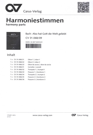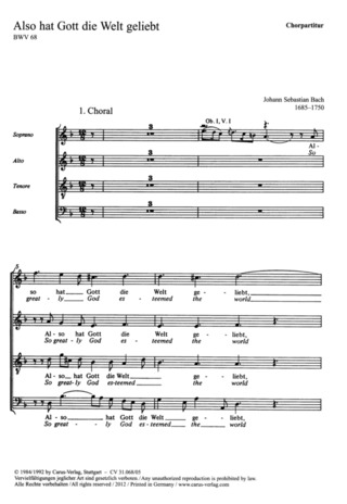 Also Hat Gott Die Welt Geliebt BACH JOHANN SEBASTIAN