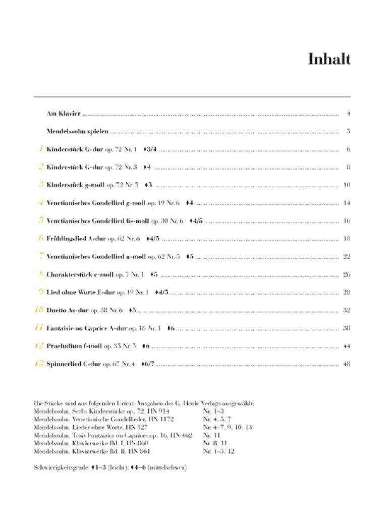 Am Klavier – 13 Bekannte Originalstücke MENDELSSOHN-BARTHOLDY FELIX