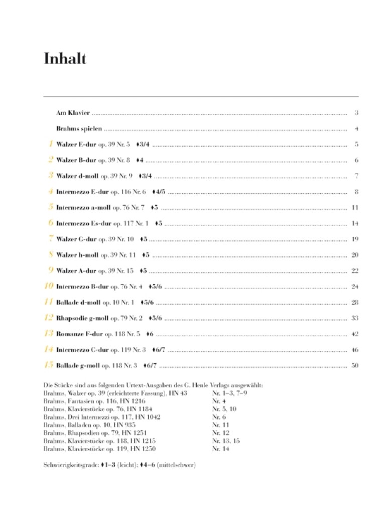15 études originales de piano par Johannes Brahms pour des étudiants de niveau intermédiaire. Édition en allemand.