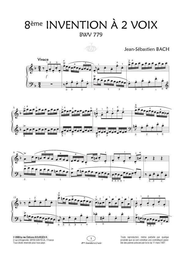 Anacrouse Bach J.S. 8ème Invention A 2 Voix Fa Majeur Bwv 779 BACH JOHANN SEBASTIAN