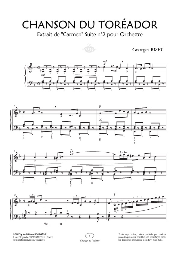 Anacrouse Bizet Chanson Du Toreador Fa Majeur BIZET GEORGES