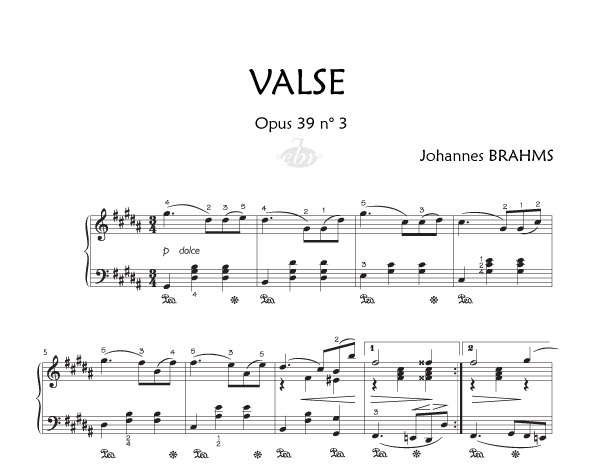 Anacrouse Brahms Valse No3 Op. 39 BRAHMS JOHANNES
