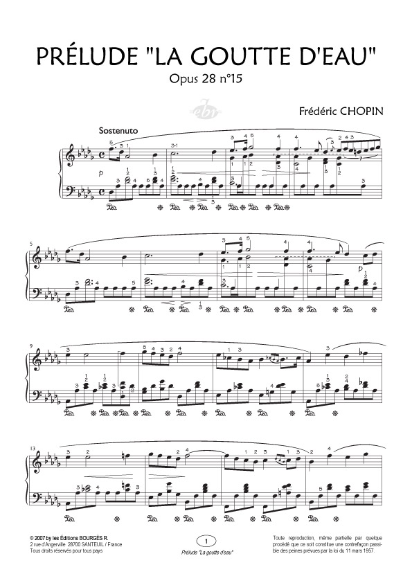 Anacrouse Chopin Prelude ‘La Goutte D’Eau’ Reb Majeur Op. 238 No15 CHOPIN FREDERIC