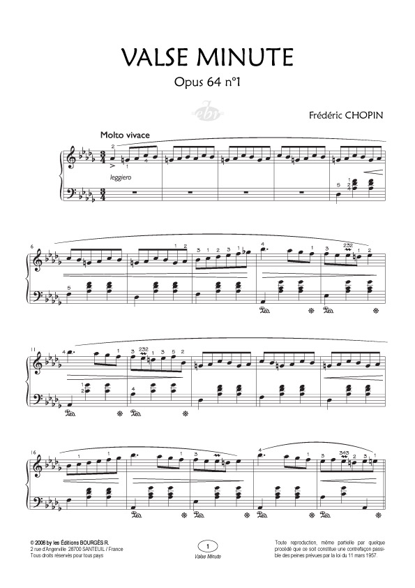 Anacrouse Chopin Valse Minute Op. 64 No1 Re B Majeur CHOPIN FREDERIC