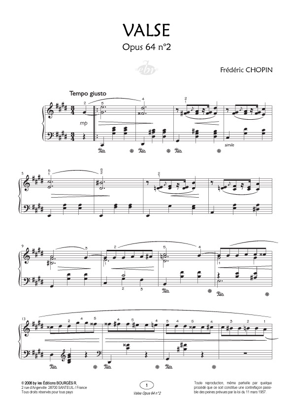 Anacrouse Chopin Valse Op. 64 No2 Do Diese Mineur CHOPIN FREDERIC