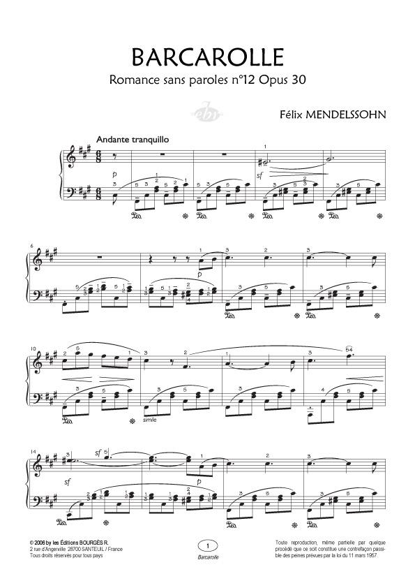Anacrouse Mendelssohn Romance Sans Parole ‘Barcarolle’ MENDELSSOHN-BARTHOLDY FELIX