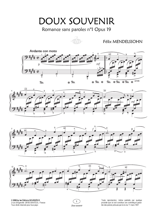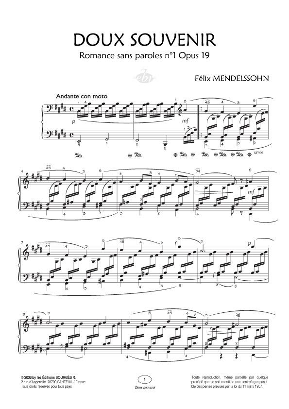 Anacrouse Mendelssohn Romance Sans Parole’Doux Souvenir’ MENDELSSOHN-BARTHOLDY FELIX