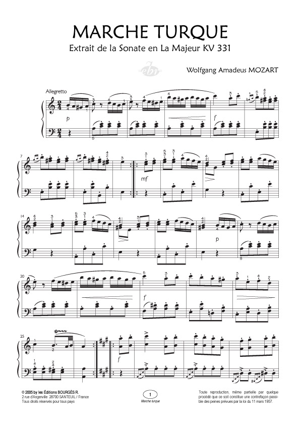 Anacrouse Mozart Marche Turque MOZART WOLFGANG AMADEUS