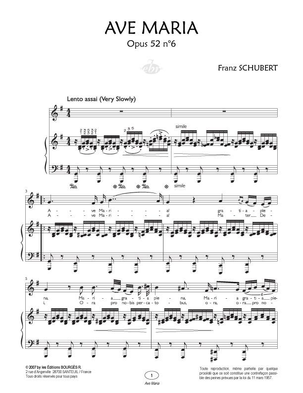 Franz Schubert compose " l'Ave Maria " pour voix et piano en 1825. Celui-ci est publié en 1826 sous l'opus 52 #6, en Sib Majeur.