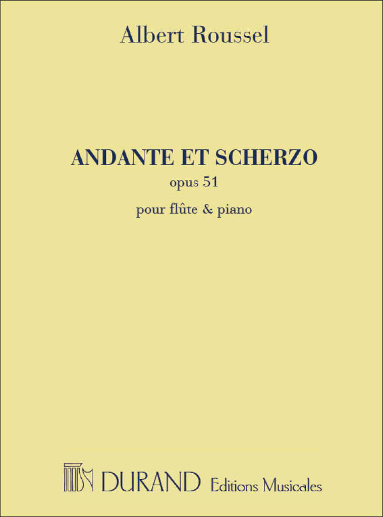 Andante et Scherzo Op. 51 pour flûte avec accompagnement au piano d’Albert Roussel. Inclut une partie distincte pour la flûte.