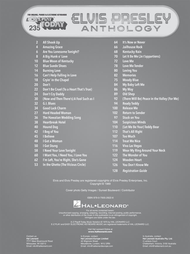 Anthology Ez Play Today Orgue PRESLEY ELVIS
