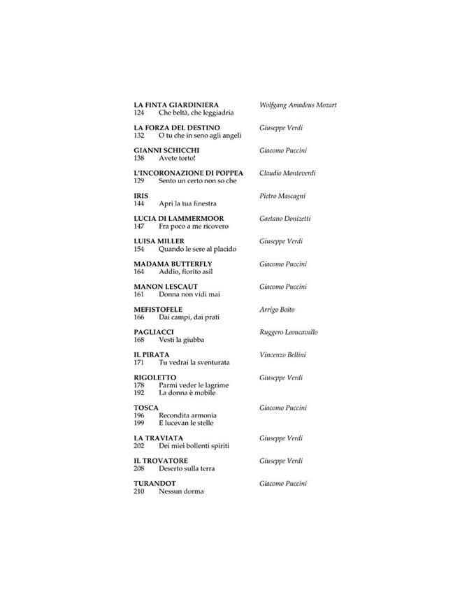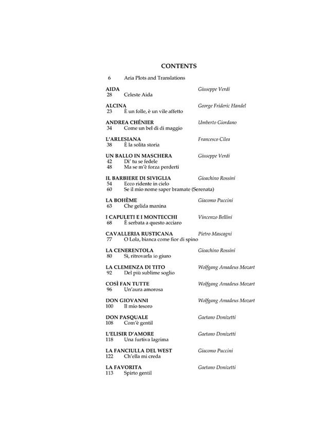 Chaque studio d'art vocal et chanteuse grave auront besoin de ces nouveaux volumes, qui sont un complément heureux à l'G. Schirmer Opera Anthology. Cette impressionnante série prend un air sérieux à l'opéra en italien, ce qui entraîne dans les plus grandes anthologies d'airs jamais publiés consacré au sujet. Arias comprennent plus célèbres extraits ainsi que des beautés rares les. Chaque aria a été soigneusement étudié et nouvellement gravé. Notes de tracé et les traductions sont incluses pour toutes les sélections. Mozart, Rossini, Donizetti, Bellini, Verdi et Puccini sont abondamment représentés avec essentiels ainsi que des airs intéressants. Sont également inclus les merveilleux airs baroques de Monteverdi, Cavalli, Handel, Vivaldi et Pergolesi. Au-delà de Mozart, classique ère italien airs de Gluck, Cimarosa et Paisiello peut être trouvée dans les compilations. D'autres compositeurs des 19e et 20e siècle sont représentés Boito, Catalani, Cilea, Giordano, Leoncavallo, Mascagni, Montemezzi, Ponchielli, Respighi et Wolf-Ferrari. La plupart des arias ont jamais apparu dans les collections. Il ya 36-41 airs par volume.