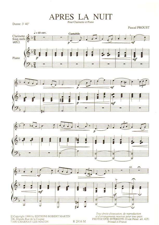 Berceuse Et Passepied CALMEL ROGER Clarinette et Piano Robert Martin 9,80€