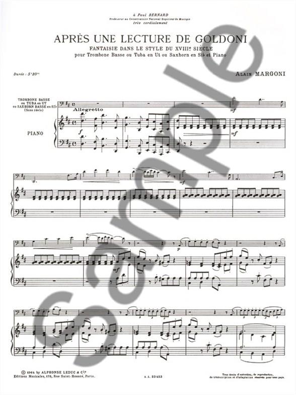 Fantaisie dans le Style du 18ème Siècle. For Bass Trombone or Tuba, with piano accompaniment.