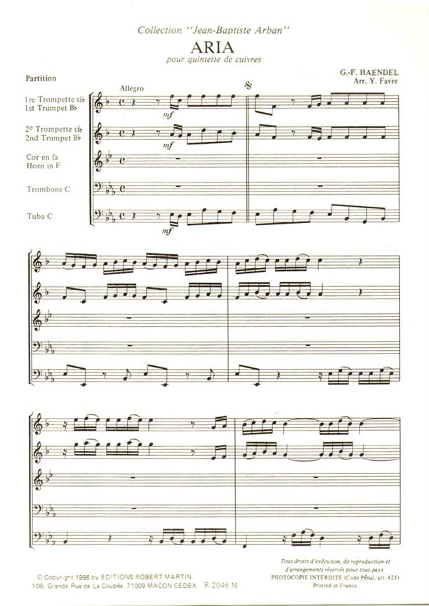 Aria, Tb Solo HAENDEL GEORG FRIEDRICH