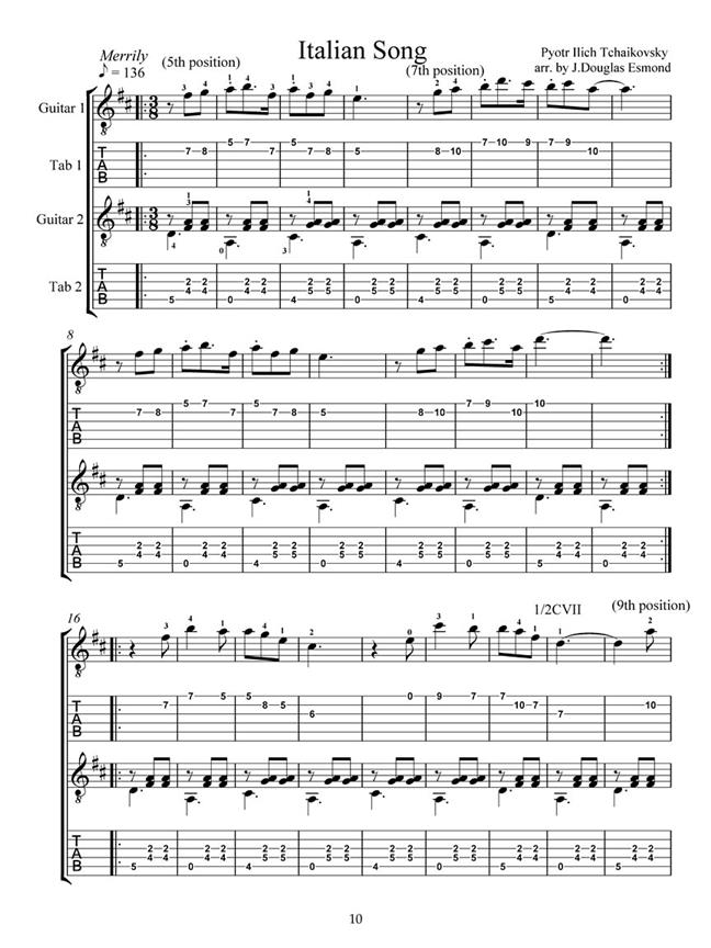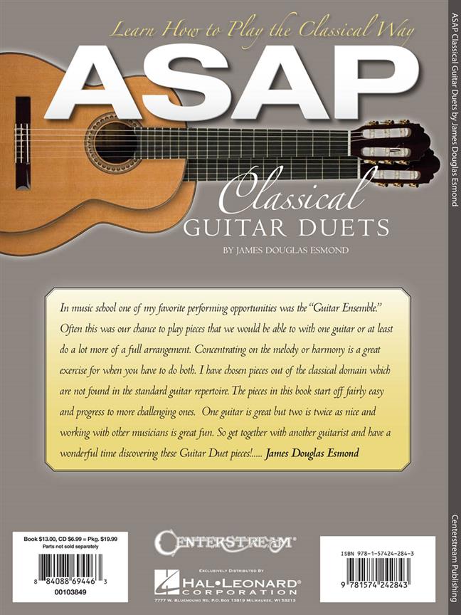 Se concentrer sur la mélodie et l'harmonie d'une pièce est un excellent exercice pour quand vous avez à faire à la fois. Pour ce livre, l'auteur James Douglas Esmond a choisi une douzaine de morceaux hors du domaine classique qui ne se trouvent pas dans le répertoire de la guitare classique. Les pièces de ce livre commencer assez facile et les progrès vers les plus difficiles pour les guitaristes de niveau intermédiaire. Une guitare est très bien, mais deux, c'est deux fois plus agréable - et de travailler avec d'autres musiciens est très amusant. Alors faites le avec un guitariste et avoir un temps merveilleux à découvrir ces morceaux en duo guitare! Le CD d'accompagnement comprend 24 pistes.