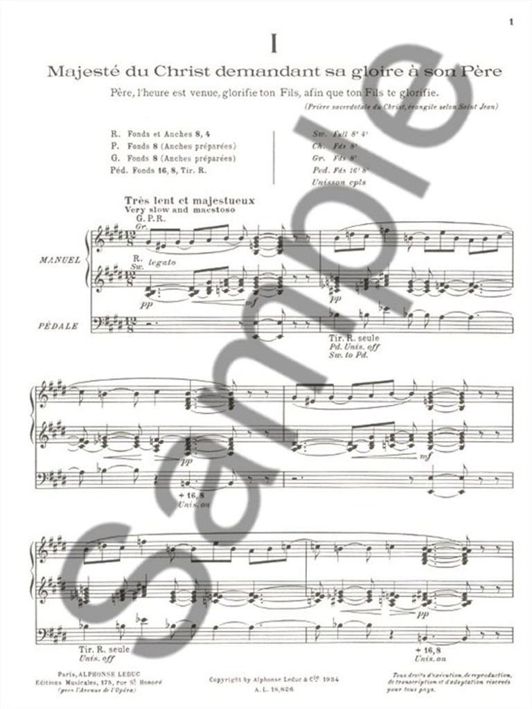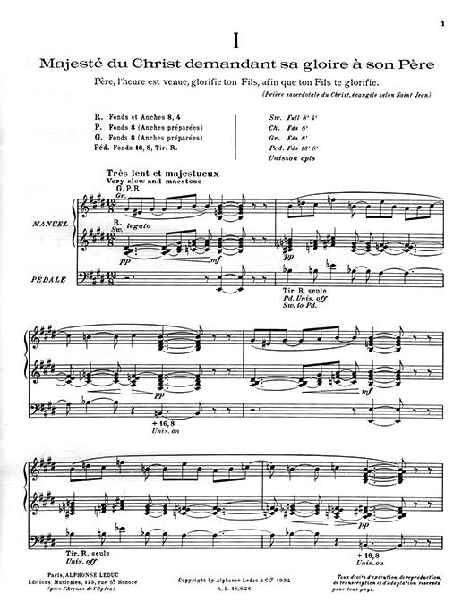 Olivier Messiaen (1908-1992) is known for his unique composition style. Incorporating complex rhythms, harmony and melodies, The Ascension for Organ is no exception to the composer's popular, distinctive style. The Ascension was originally composed for orchestra by Messiaen in 1932-1933. The composer described the work as Four Symphonic Meditations and the sections are; 1) Majesty of Christ praying that His Father should glorify Him, 2) Serene Alleluias from a soul longing for Heaven, 3) Alleluia on the Trumpet, Alleluia on the Cymbal, and 4) Prayer from Christ ascending towards His Father. Messiaen arranged The Ascension for solo Organ a year later. The first, second and fourthmovements are arrangements of the orchestral version, however, the composer created a new third movement; Outburst of joy from a soul before the Glory of Christ, which is its own glory. The Ascension is essential to all advanced organists seeking to expand and vary their repertoire.