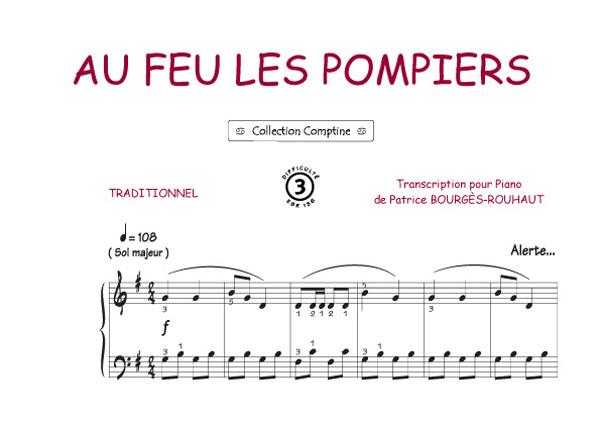 Au feu les pompiers - (Collection Comptine) Arrangement Piano - 1 + feuillet pour paroles - niveau : Facile