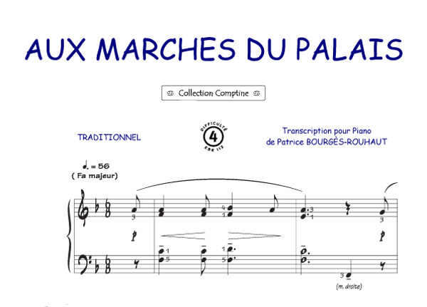 Aux marches du Palais - (Collection Comptine) Arrangement Piano - 1+ feuillet pour paroles - niveau : Facile