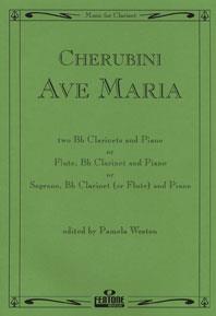 Cherubini's Ave Maria was originally scored for Soprano and Clarinet in C with two Violins, Viola, Cello and Bass accompaniment. The work is available here, with parts, to be performed either with two B flat Clarinets and Piano, or Flute, B flat Clarinet and Piano, or Soprano, B flat Clarinet (or Flute) and Piano. This version as of the piano score and parts has been edited by Robin de Smet.