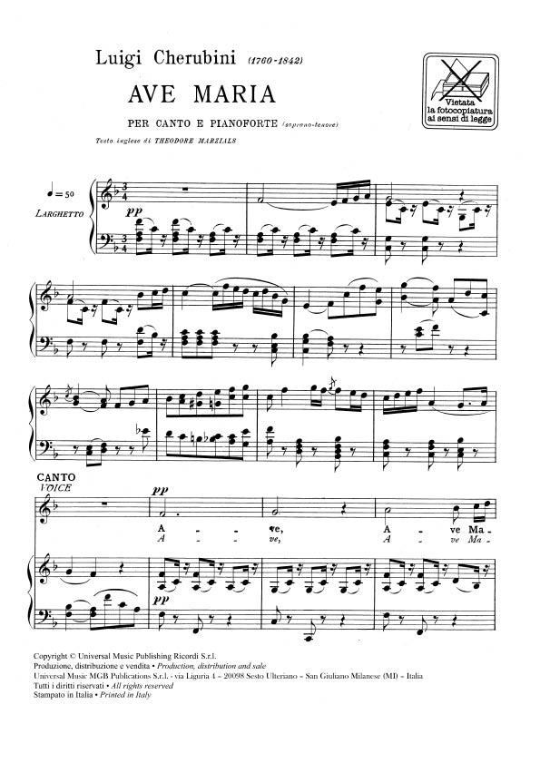 Ave Maria Per Canto E Pianoforte CHERUBINI LUIGI