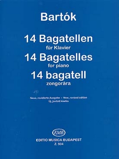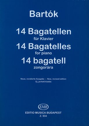 This is one of Bartók's most famous series of piano pieces, whose fame is probably greater than either its popularity with pianists, or the frequency with which it occurs on concert programmes. When it was written [in 1908] it triggered sensation and scandal in musical circles. The series as a whole (its Hungarian title was originally 14 zongoradarab [14 piano pieces], Bartók later converting to the use of the word bagatelle in Hungarian too) is not a true cyclic composition that can only be played in its entirety and with movements in the original order, but rather a more loosely ordered collection, an anthology. Some of the pieces belong together. But the varied succession oftempos and characters, the 'Gradus ad Parnassum' principle, generally proceeding from the easier towards the technically or musically more difficult, could also be a reason for the volume's ordering. ' (HCD 32524 Bartók New Series Vol. 24, István G. Németh)