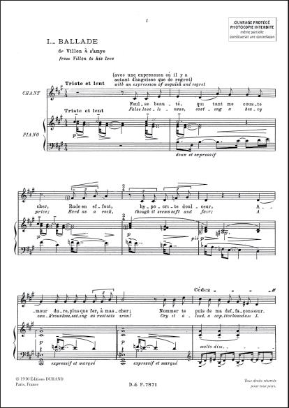 Claude Debussy 's Trois Ballades De François Villon for Voice and Piano with English words by Nita Cox.